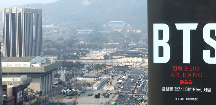 The heart of Gwanghwamun Square is rapidly transforming as the world prepares for the long-awaited full-group return of BTS.